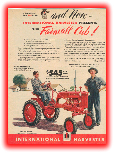 Here, on our site you will be able to take a trip down memory lane and see what advertising for every day products was like over the past 100 years. Alot has changed over time and the nostalgia of the vintage advertisements we have to offer can take you back in time. Our goal is to keep American History alive. We feel that by sharing our passion for these vintage advertisements we can show the people of today the advancements we have made with time. Here, at CCPLACE Vintage Advertisements we specialize in Agricultural items, such as tractors, implements and other farm mechanics. We also have many other miscellaneous advertisements for all products available then and now. All of our advertisements are original magazine ads and vary in size and condition. These ads make great conversation pieces for any home, shop or office. |